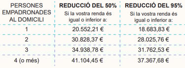 Es pot demanar una reducció de la quota si les persones que viuen a l’habitatge no han superat el 2025 uns ingressos bruts segons el quadre: